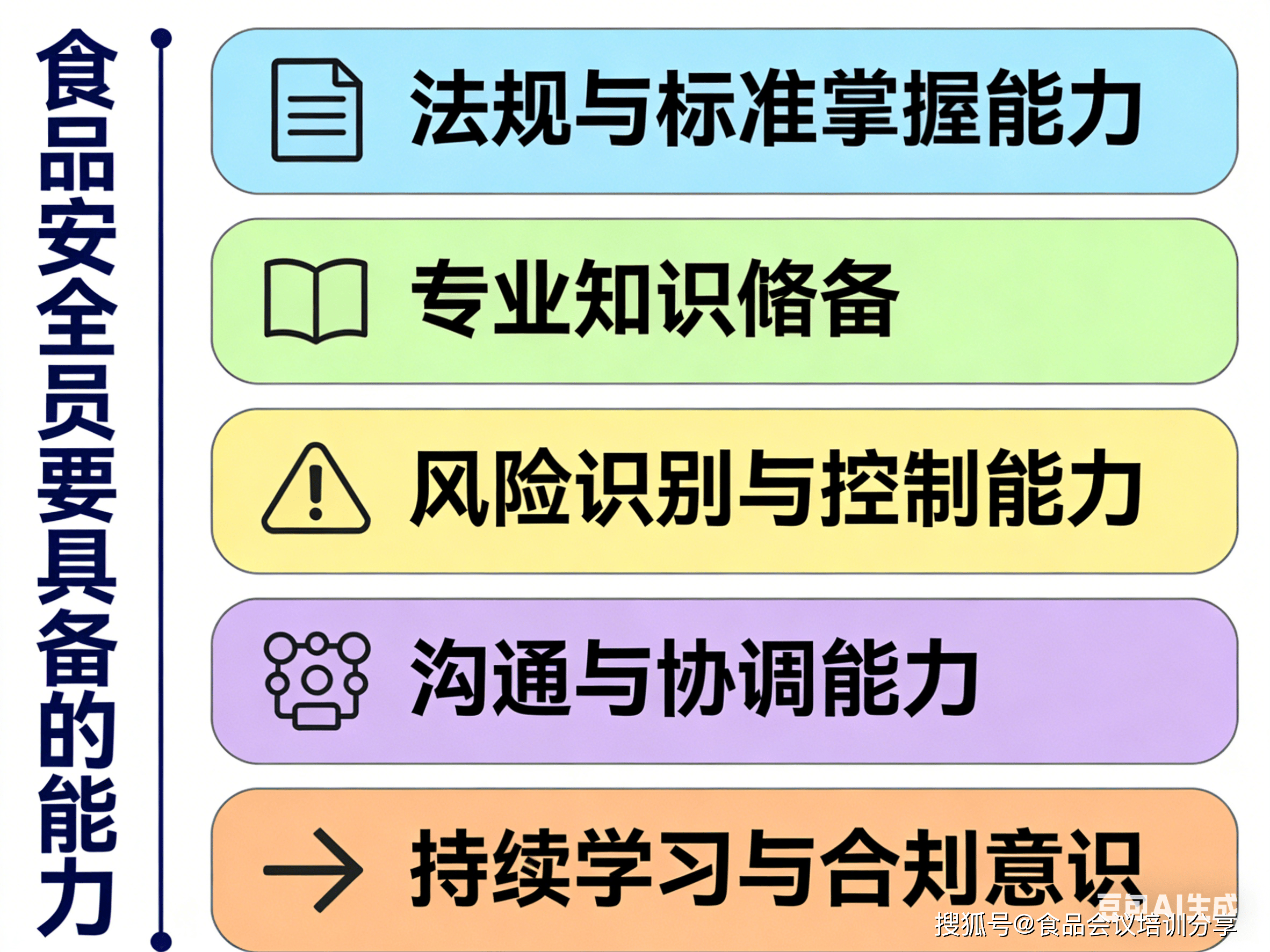 控制食物微生物学(如致病菌污染风险、菌落总数节制)、添加剂、兽药残留等化学风险)、食物工艺学(如热加工、冷藏、包拆等环节的平安节制点)等焦点学问,能识别分歧食物品类(如生鲜、罐头、烘焙)的特有风险。