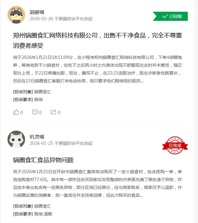 2025年,公司估计收入77。5亿元—78。5亿元,同比增加19。8%—21。3%;估计实现净利润4。43亿元至4。63亿元,同比增幅83。7%至92%。做为社区餐饮供应链品牌,锅圈从打“正在家吃暖锅、烧烤”场景,公司营收正在2022年达到71。73亿元高点,并于次年登岸港股。但上市首年业绩便呈现“变脸”,跟着公共卫生事务竣事,居家暖锅需求回落,2023年公司收入下滑15%至60。94亿元;2024年略有回暖,营收增至64。7亿元,但仍未回升至2022年的峰值程度。年报显示,2023年、2024年锅圈门店数量别离为10307家、10150家,呈现必然下滑。2025年,创始人杨明超喊出要再开1万家店的豪言,截至昔时岁尾,公司门店数量达到11566家,较岁首年月添加了1416家。值得留意的是,截至2025年9月,锅圈门店总数还逗留正在10761家,相当于第四时度3个月净增门店805家,跨越了前9个月总和,跟着门店规模扩大、店均收入提拔,叠加运营效率优化,配合鞭策了锅圈2025年焦点业绩目标的增加。不外,亮眼业绩难掩锅圈运营存正在的短板,其高速扩张背后的加盟模式现患正持续。据悉,锅圈99。9%的门店为加盟店,自营门店仅十余家,这种模式虽支持了企业快速扩张,却也带来了门店管控难度大、食物平安事务易发等问题。就正在近期的1月15日,杭州一名消费者通过外卖平台正在锅圈食汇订购的食材中,发觉一盒出产日期为2026年1月12日、保质期仅2天的老豆腐。经多方协商,门店最终补偿该顾客300元。针对此事,锅圈公关部答复,涉事豆腐属于公司“授权答应门店自行采购并发卖的商品品类”,根据相关合同取,此类“自采商品”的采购、储存、办理及售后义务,应由做为运营从体的加盟门店自行承担。这一回应,将品牌总部取加盟门店的义务进行了切割。据报道,2025年11月,白山一名消费者爆料其正在锅圈食汇采办的毛肚中发觉一只苍蝇;同年10月,锅圈食汇的暖锅底猜中呈现蛆虫,监管部分介入协调。截至目前,黑猫赞扬平台上,锅圈食汇的相关赞扬达396起,多涉及食材异物、变质、食用后腹泻等问题。
