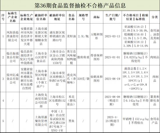 上海市市场监管局引见,2025年第36期省级食物平安抽检消息发布。本次抽检消息涉及7大类食物,包罗蛋成品、豆成品、肉成品、食用油、油脂及其成品、薯类和膨化食物和糖果成品。